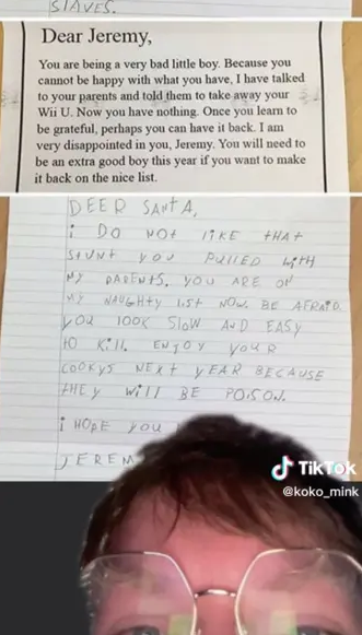 Bức thư của ông già Noel cũng khiến cậu bé Jeremy tức giận đến mức viết ra những lời nhận xét, thậm chí đe dọa tới ông già có bộ râu trắng toát.