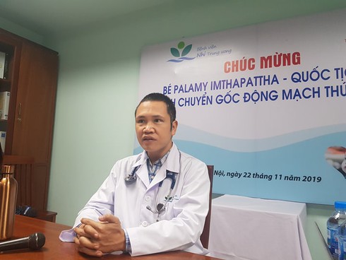 Bệnh nhi sinh tại Lào nặng 3,1 kg nhưng mắc bệnh lý chuyển gốc động mạch, tím tái. Sau khi có sự hội chẩn của hai bệnh viện bên Lào và Bệnh viện Nhi trung ương, bệnh nhi đã được chuyển bằng đường hàng không sang sân bay Nội Bài và đưa thẳng vào Bệnh viện Nhi trung ương làm phẫu thuật gấp.