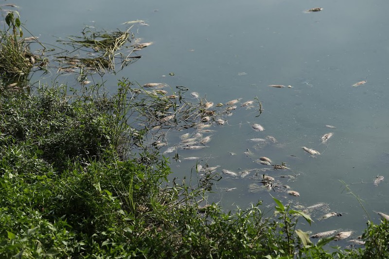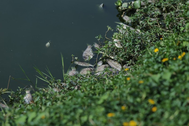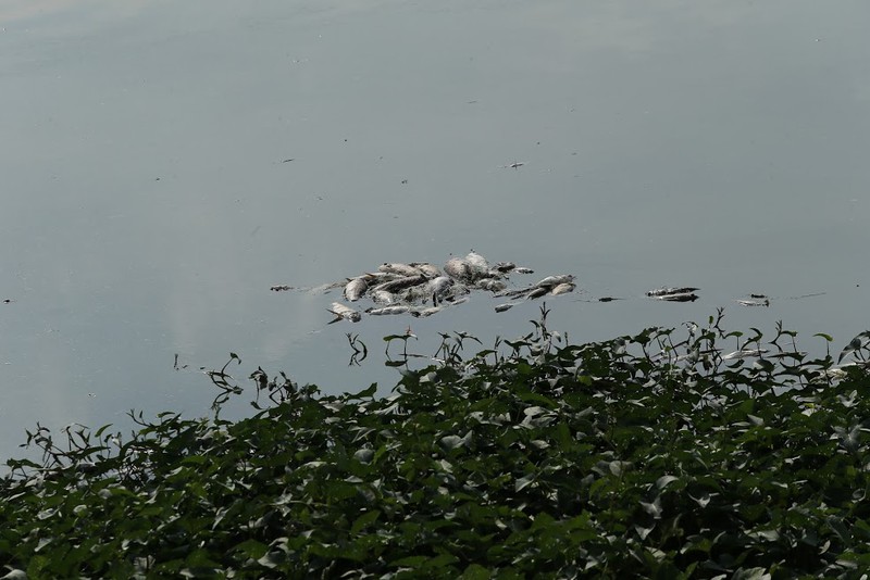 Chiều 18/8, tại một góc hồ gần khu cổng chính Công viên Yên Sở, phía giáp với đường Vành đai 3, xuất hiện nhiều cá rô phi chết nổi, theo gió trôi dạt sát mép cỏ. Nhiều con có hiện tượng thối rữa, bốc mùi hôi thối khiến nhiều người phải bịt mũi khi đi qua khu vực này.