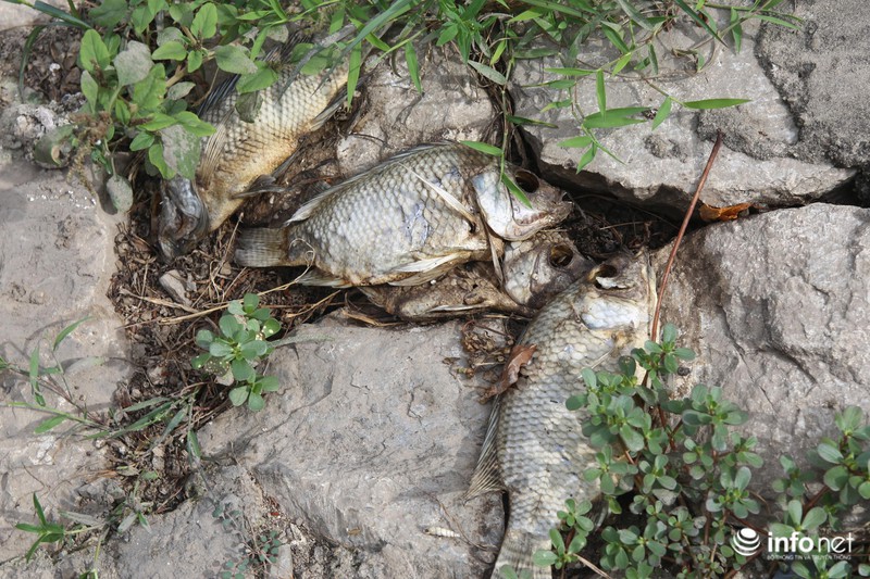 Những xác cá chết khô trên bờ. |