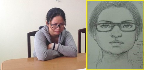 Đối tượng Trâm và bức phác họa chân dung của họa sĩ để nhận dạng. |