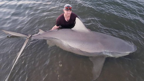 Cá mập bò mang thai dài 3m cắn câu trên sông Australia