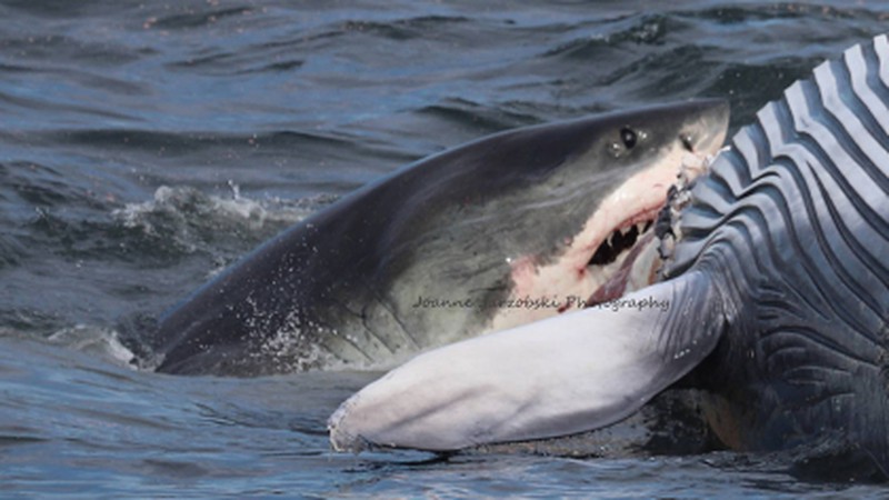 Theo tờ cbslocal, Joanne Jarzobski, nhà sinh vật học hải dương đã ghi lại cảnh ấn tượng khi một con cá mập tấn công xé xác con cá voi ở ngoài khơi Cape Cod, Massachusetts, Mỹ. Sự việc xảy ra gần con tàu đang chở 160 hành khách.