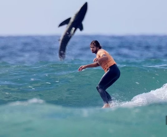 Hình ảnh lan truyền trên mạng cho thấy một con cá mập trắng bất ngờ xuất hiện ngay gần thí sinh đang biển diễn lướt sóng. Con cá mập trắng tung người phi lên khỏi mặt nước, cách người lướt sóng Tyler Warren chỉ vài mét. Toàn thân cá mập nhô hẳn lên khỏi mặt nước, mũi hướng lên trời, thân và vây màu xám bóng lấp lánh dưới ánh mặt trời của vùng biển California.