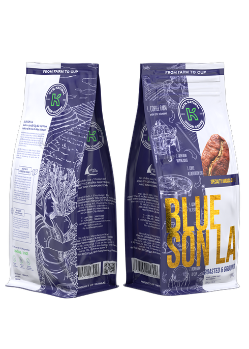 Blue Sơn La có vị hơi chua, thanh khiết, nhẹ nhàng, hương thơm cam rừng và hậu vị ngọt mật ong. Sản phẩm được đóng gói sang trọng, đẹp mắt, thỏa mãn vị giác và thị giác cho những ai yêu thích cà phê.