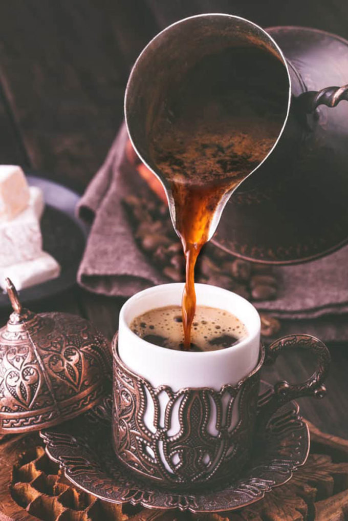 Cà phê Thổ Nhĩ Kỳ đạt 4,4 sao, có hạt được xay mịn, pha cùng nước lạnh và đường (nếu thích), đựng trong một chiếc bình truyền thống có tên gọi cezve hoặc ibrik. Cà phê được ủ ở nhiệt độ thấp.