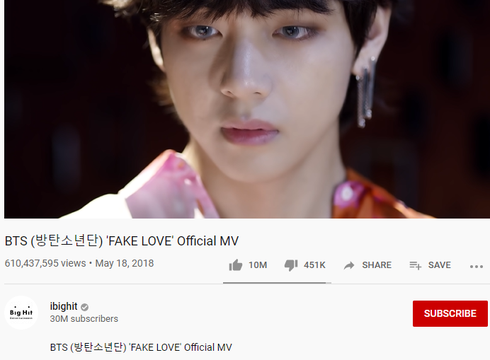 Fake Love là ca khúc đã mang tên tuổi của BTS đến với thế giới khi lọt vào Bảng xếp hạng Billboard Hot 100 Mỹ với vị trí thứ 10. Hiện đây là bài hát xếp hạng cao thứ hai của một nhóm nhạc Hàn Quốc tại Mỹ.