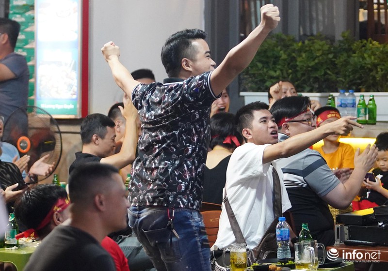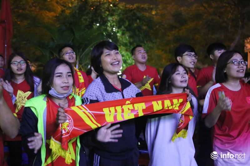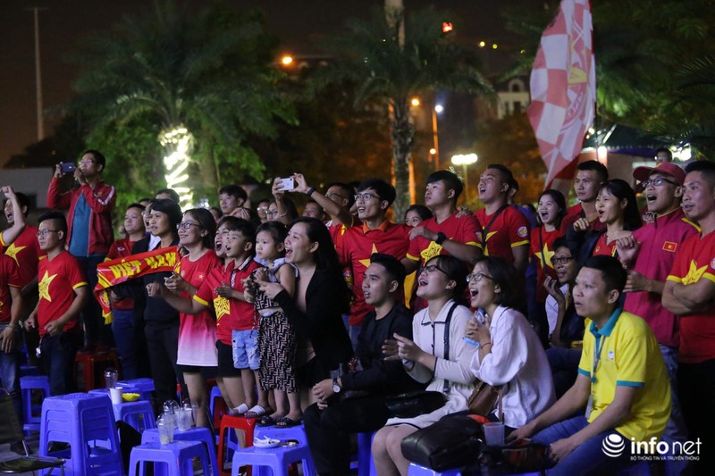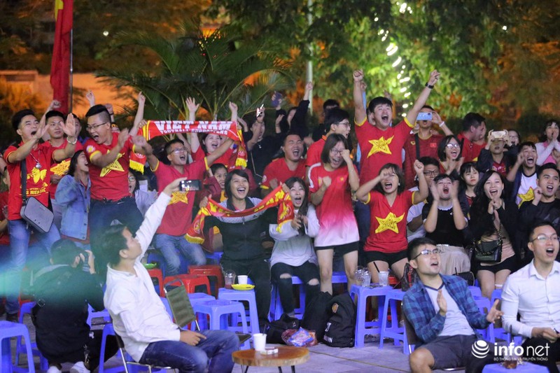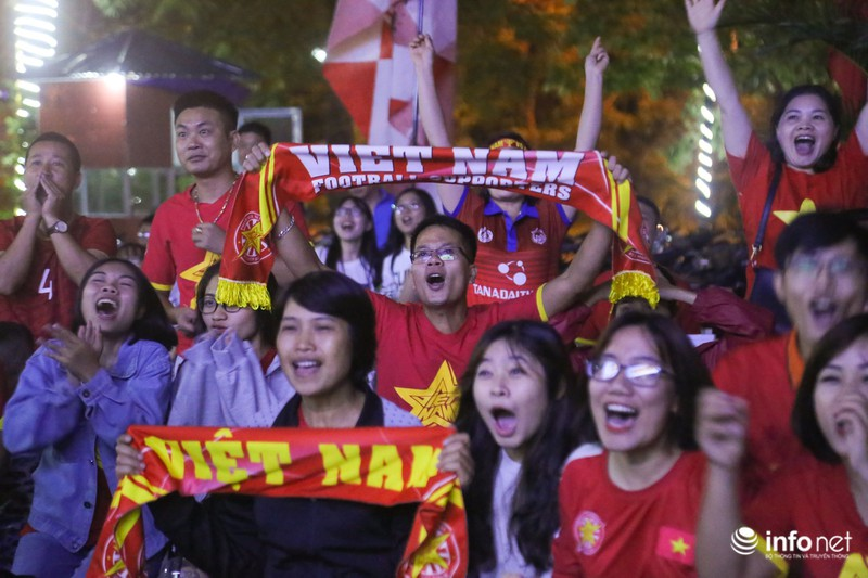 Niềm vui vỡ òa khi chứng kiến đội tuyển Việt Nam mở tỉ số ở phút 25 của trận đấu, với pha băng vào của Duy Mạnh.