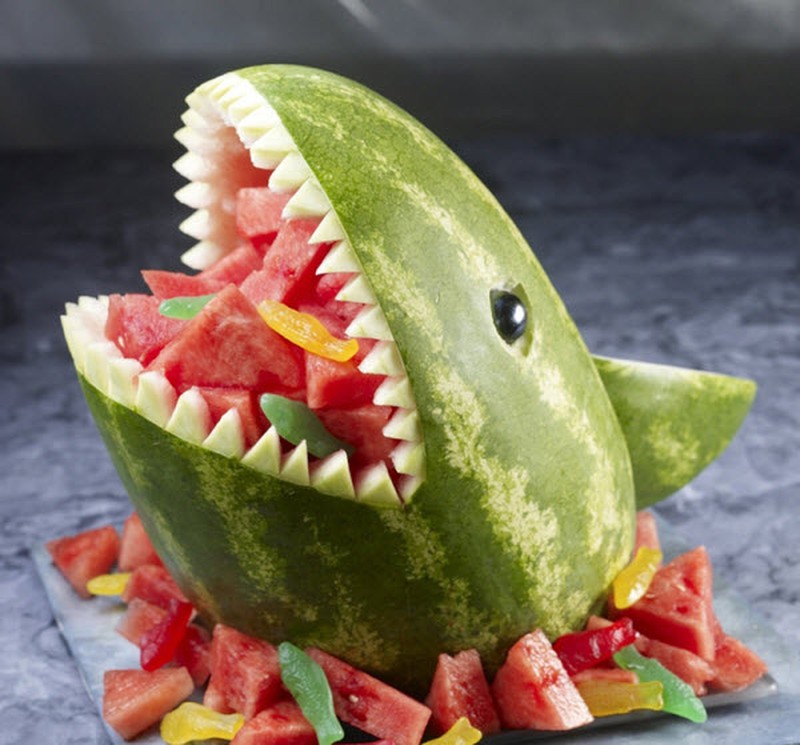 Mẫu dưa hấu "cá mập" này sẽ làm cho các bạn trai cực kỳ hào hứng với những cách cắt răng cưa cực kỳ đơn giản. |