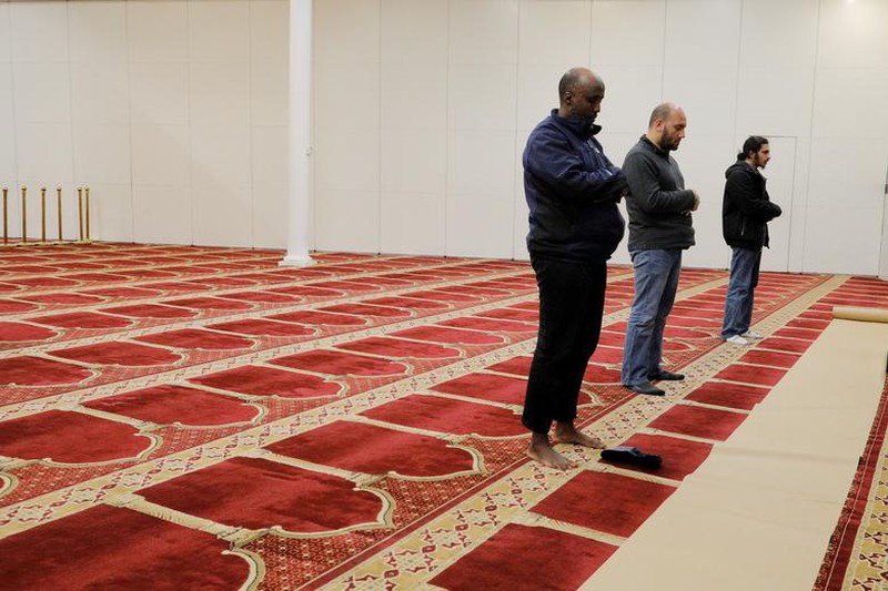 Những người đi cầu nguyện tại Nhà thờ Hồi giáo Puget Sound ở Redmond, Washington, Mỹ, cũng tuân thủ quy tắc giữ khoảng cách xã hội. |