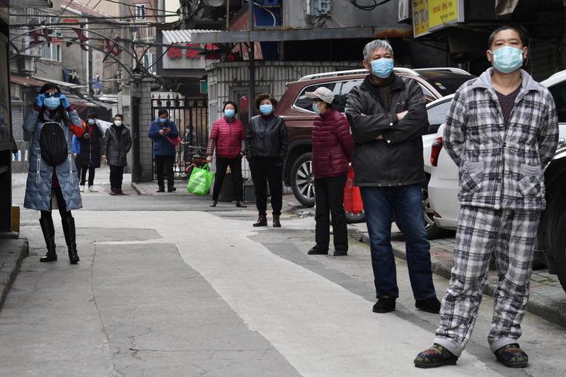 Người dân xếp hàng mua rau ở Vũ Hán, Hồ Bắc, Trung Quốc. |