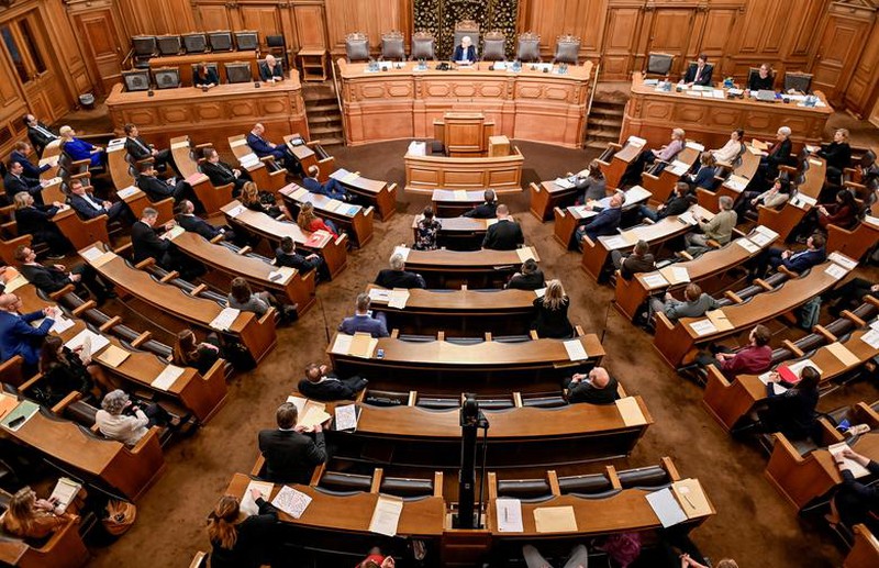 Các thành viên Quốc hội Đức trong cuộc họp ở Hamburggiữ khoảng cách bằng cách ngồi xa nhau. |