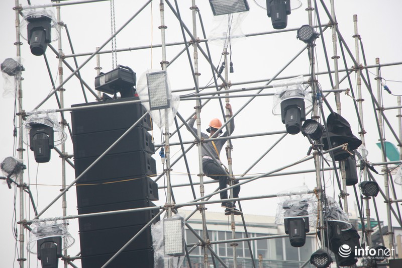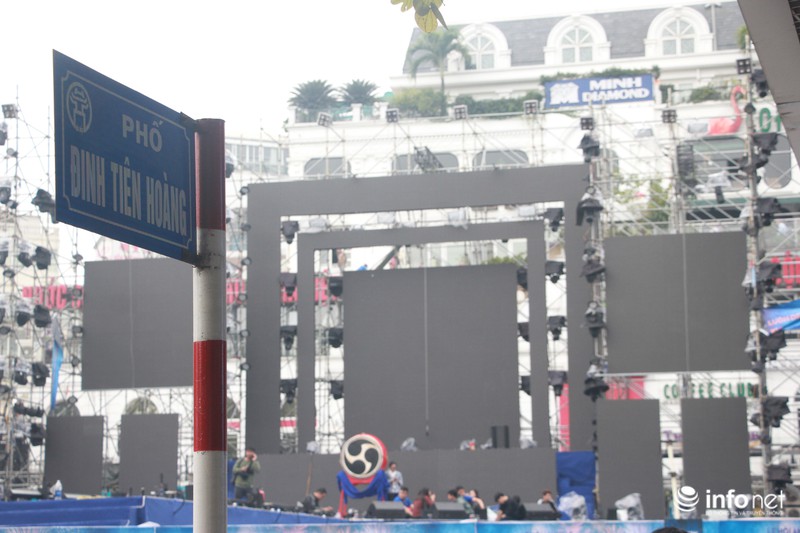 Cũng trên trục đường Đinh Tiên Hoàng, tại khu vực Tượng đài Lý Thái Tổ một sân khấu có quy mô hoành tráng khác cũng đang được gấp rút hoàn thiện. |