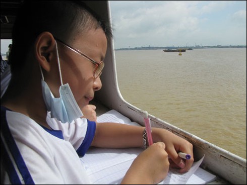 Học sinh trường tiểu học Nguyễn Bỉnh Khiêm (Q.1, TP.HCM) học tiết văn trên sông nước - một cách làm nhằm khơi gợi cảm xúc cho học sinh. |