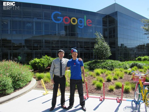 Giang (phải) chụp cùng anh trai tại trụ sở của Google - nơi anh trai hiện đang làm việc. (Ảnh: NVCC) |
