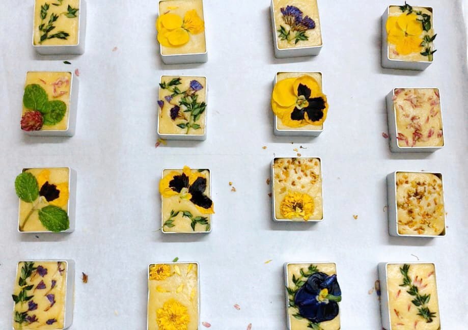 - Về hoa: dụng dòng hoa mixed edible có bán tại các cửa hàng làm bánh. Dùng hoa tươi sẽ có mùi dịu nhẹ hơn không làm át mùi bánh như hoa khô.