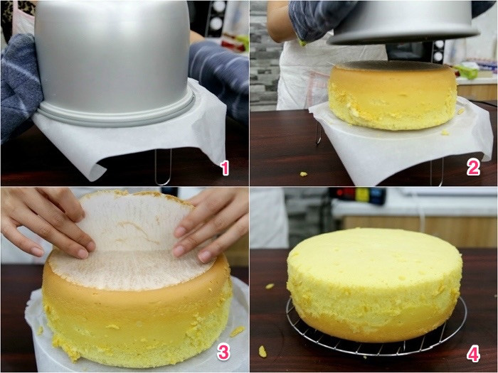 Sử dụng lò nướng: Cho bánh vào lò nướng khoảng 10 phút với nhiệt độ ở mức 170 độ C. Sau đó, hạ nhiệt độ xuống 160 độ C và nướng tiếp trong khoảng 30 phút rồi lấy bánh ra để nguội chờ phết kem lên.