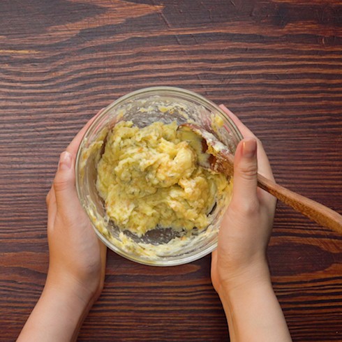 Bước 4: Cho kem tươi, đường, muối, tỏi đã phi vào trộn đều cùng với phần bơ vừa quay. Nêm lại gia vị cho vừa miệng nếu cần. Bạn cũng có thể cho hỗn hợp này vào lò vi sóng quay 1 phút để nó mềm ra nhưng không chảy nước.