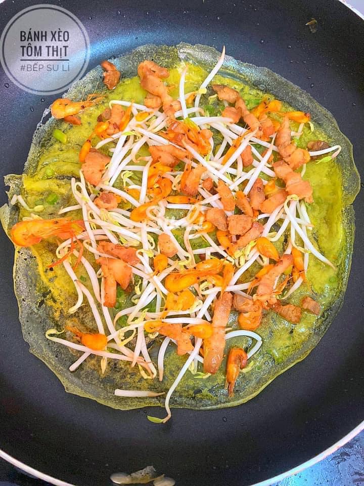 Bước 3: Đổ bánh xèo tôm thịt
