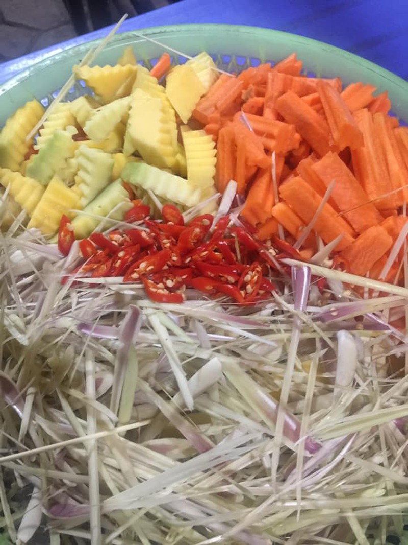 Xoài, cóc hoặc cà rốt tùy theo sở thích của bạn gọt sạch vỏ cắt miếng vừa ăn,