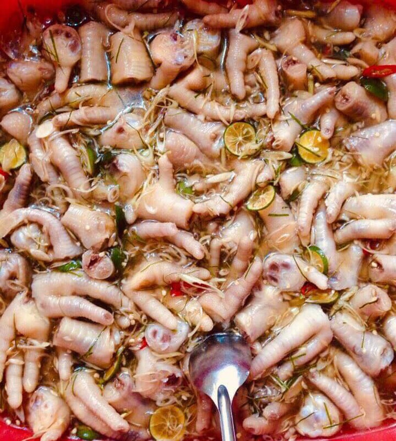 Chân gà ngấm vị chua cay mặn ngọt rất đậm đà và dậy mùi thơm từ sả, quất, lá chanh rất phù hợp để nhâm nhi dịp cuối tuần.