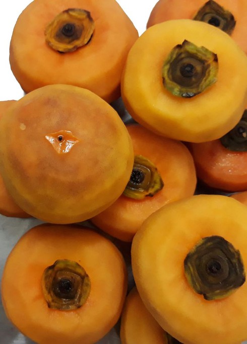 Quả hồng sau khi đã cắt tai và gọt vỏ. |