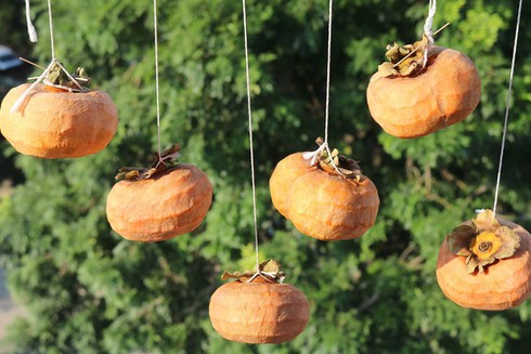 - Treo hồng ở nơi thoáng gió, khô ráo, ít côn trùng và tránh để nước vào quả. Nên phơi chỗ có nắng để bề mặt quả hồng được hong khô nhanh nhất trong 3 ngày đầu, bởi 3 ngày này xác suất bị nấm mốc là cao nhất.