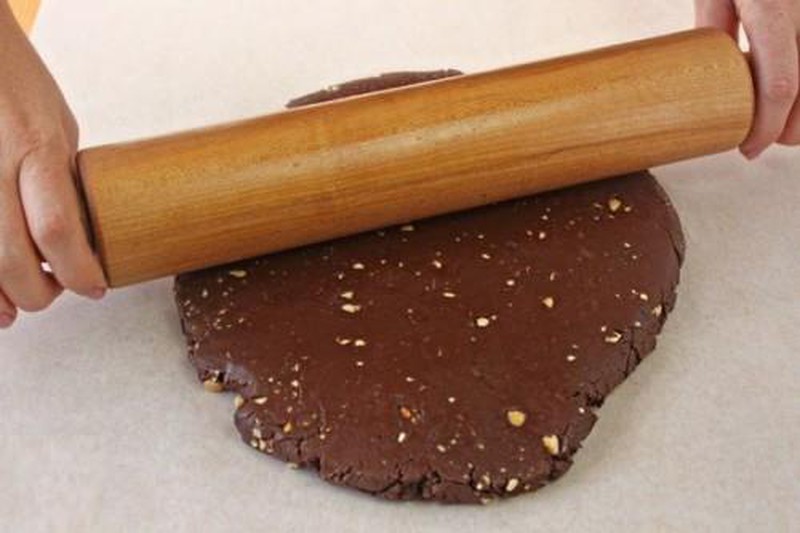 Bước 3: Bạn cho hỗn hợp sôcôla lên 1 tờ giấy nến, cán cho nó có độ dày 1,2cm rồi mang đặt vào tủ lạnh 1 tiếng. |