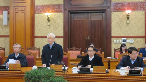 Tổng Bí thư, Chủ tịch nước Nguyễn Phú Trọng chủ trì phiên họp Ban Bí thư đánh giá kết quả 5 đoàn kiểm tra thực hiện Nghị quyết 18, 19 tại các bộ, ngành, địa phương. (Ảnh: HH) |
