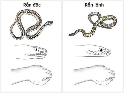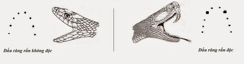 Vì vậy, khi bị rắn cắn, có thể căn cứ vào vết răng để phân biệt bị loại rắn độc cắn hay là rắn không độc cắn, nếu là rắn độc thì nhất định có một vết răng hoặc hai vết răng của răng độc, còn nếu là rắn không độc cắn thì chỉ có hai hàng răng nhỏ li ti.