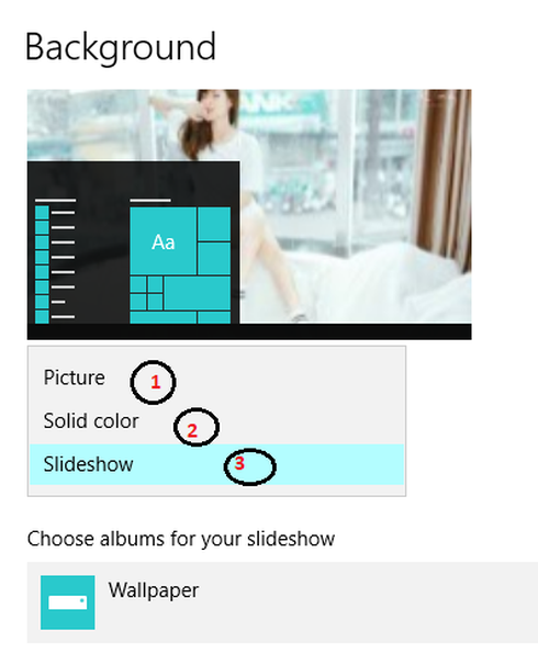Số 3: chọn một album ảnh làm ảnh nền, các ảnh chạy luân phiên.