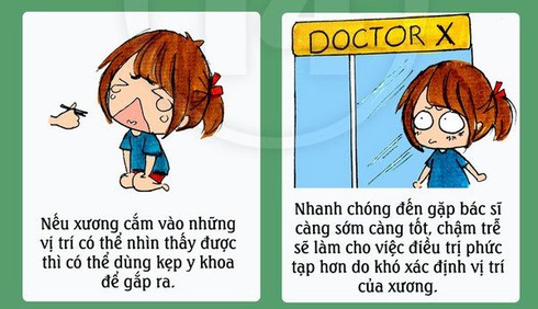 Các phương pháp trên chỉ nên được áp dụng khi trẻ trên 2 tuổi. Nếu xương mắc vào trong cuốn họng quá to hoặc đâm sâu vào trong, tốt nhất bạn nên đến ngay cơ sở y tế gần nhất để được hỗ trợ kịp thời.
