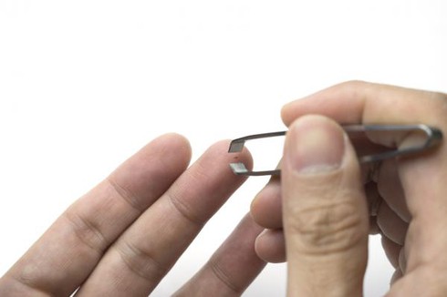 Bôi keo dán thủ công vào chiếc dằm và vùng da xung quanh. Keo dán phải phủ hoàn toàn phần lộ ra của chiếc dằm. Để keo khô đi rồi bóc lớp keo ra theo chiều có thể rút được dằm ra khỏi tay.