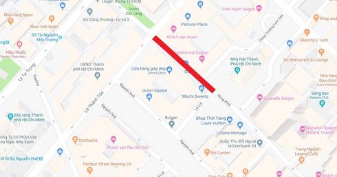 Thời điểm này, TP sẽ cấm tất cả các loại xe lưu thông vào đường Đồng Khởi đoạn từ đường Lê Thánh Tôn đến đường Lê Lợi (quận 1). Để hạn chế ảnh hưởng đến giao thông qua khu vực này, Sở đưa ra lộ trình thay thế như sau: