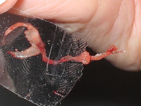 Một mẫu Morgellon vừa được lấy ra khỏi da của bệnh nhân. |