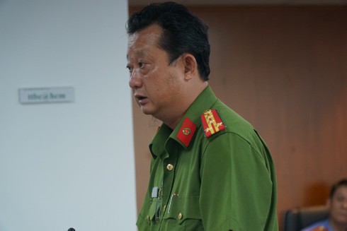 Đại tá Nguyễn Hoàng Thắng, Trưởng Công an quận Bình Thạnh thông tin tại buổi họp báo |