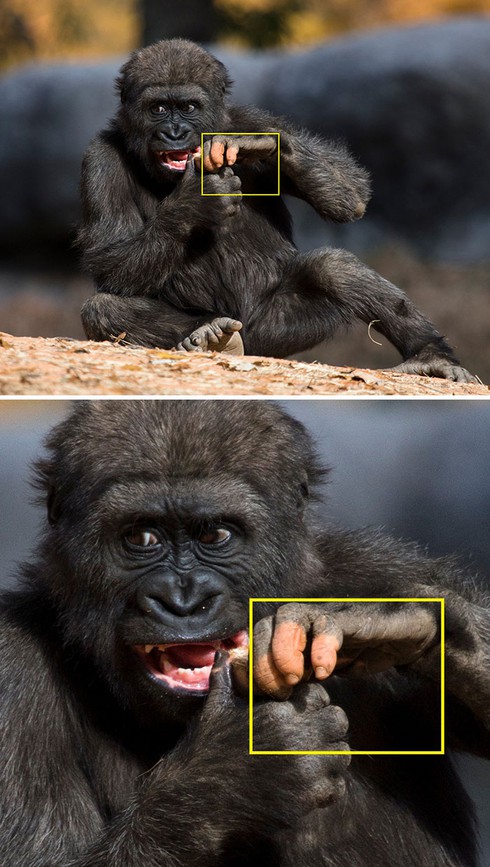 Cận cảnh bàn tay giống y hệt con người của gorilla trong sở thú Mỹ