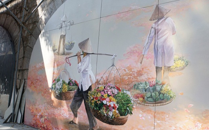 15 ngày đầu, dự án được các họa sĩ Hàn Quốc miệt mài thi công, dù thời tiết nắng nóng khiến họ gặp không ít khó khăn.Họa sĩ Hàn Quốc đã hoàn thành được 6 trên tổng 19 bức bích họa mang những vẻ đẹp văn hóa đặc trưng của người Việt qua các thế hệ. |