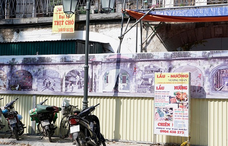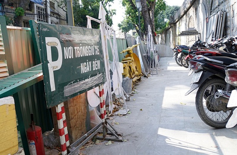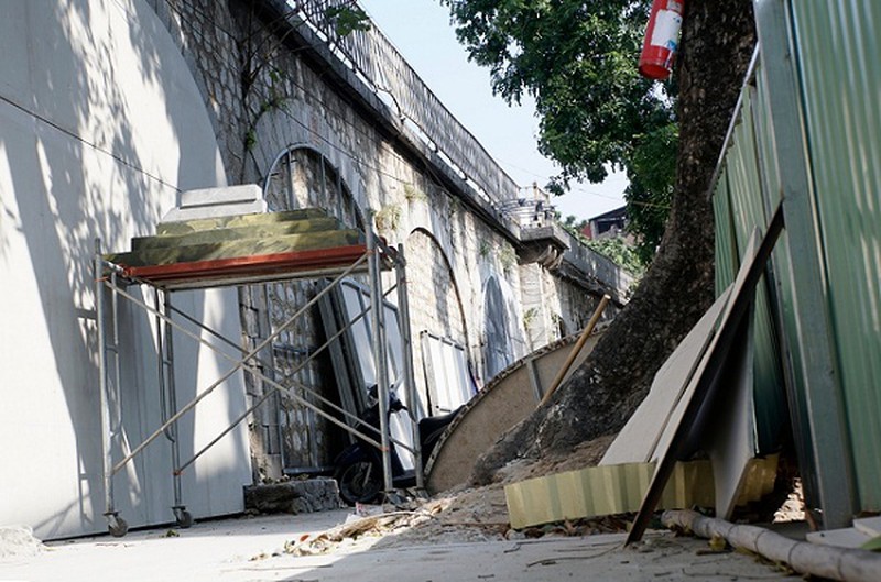 Được kì vọng về một diện mạo mới cho vòm cầu trăm tuổi trên phố Phùng Hưng nhưng thay vào đó lại trở thành bãi trông xe tự phát như thế này. |