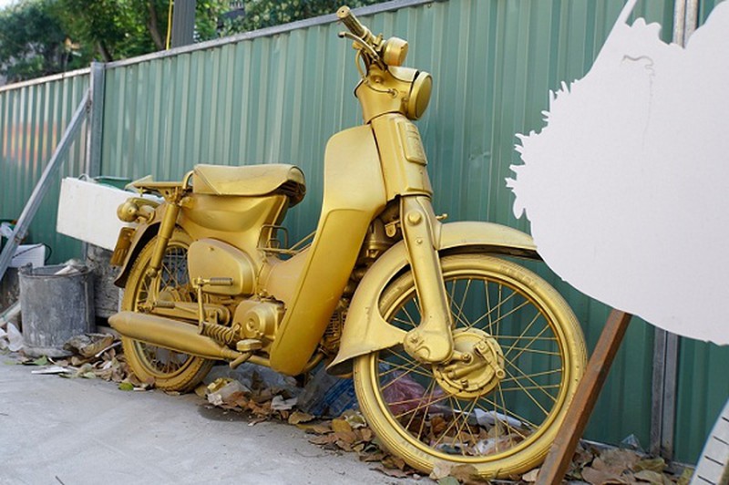 Chiếc xe mô phỏng của thập niên 80 được đưa vào làm hiện vật cũng phủ kín bụi. |