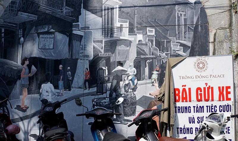 Cận cảnh bích họa phố Phùng Hưng "đắp chiếu" biến thành quán hàng, bãi trông xe
