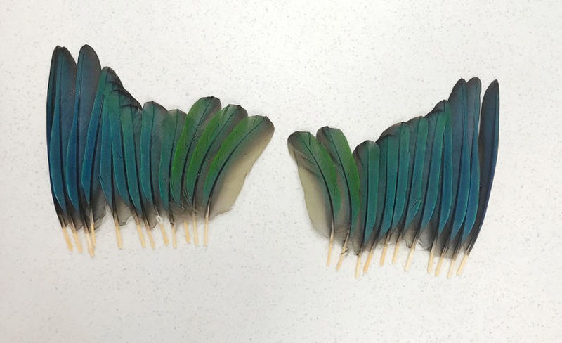 Catherine đã phải dùng tăm để ghép nối hai phần lông cánh, rồi dán keo chúng lại với nhau để tạo ra sự chắc chắn. |