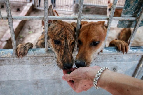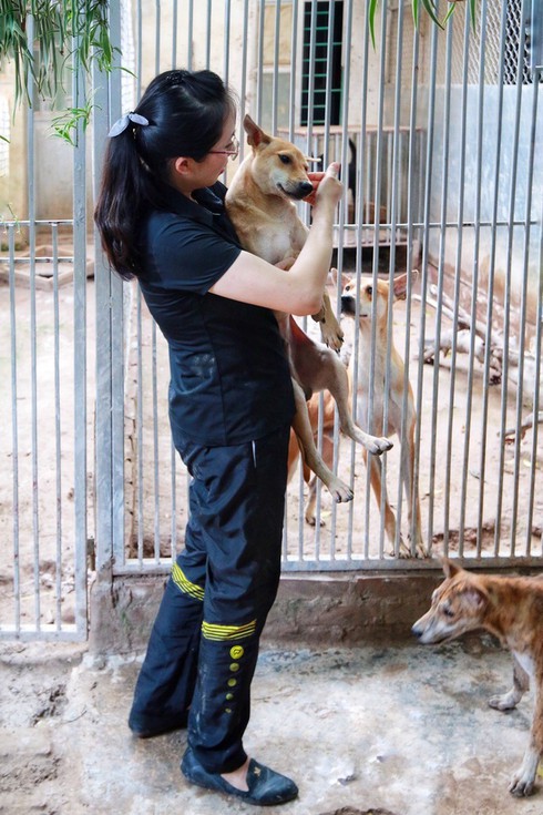 Mỗi ngày chị Hà đều dành thời gian chơi đùa và chăm sóc những chú chó để tăng sự gắn kết. Chị coi hàng trăm chú chó của mình như những người bạn tri kỷ. |