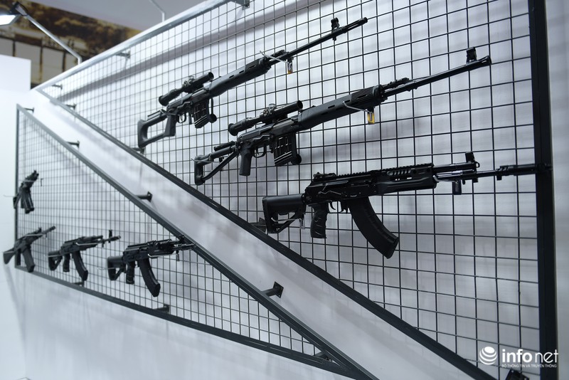Những loại súng được trưng bày tại triển lãm lần này khá đa dạng như: súng trường bắn tỉa SVD, SVDS Dragunov, súng carbine KS-K đặc biệt, súng tiểu liên Vityaz-SN, súng trường tấn công AK-15 Kalashnikov mới nhất... |