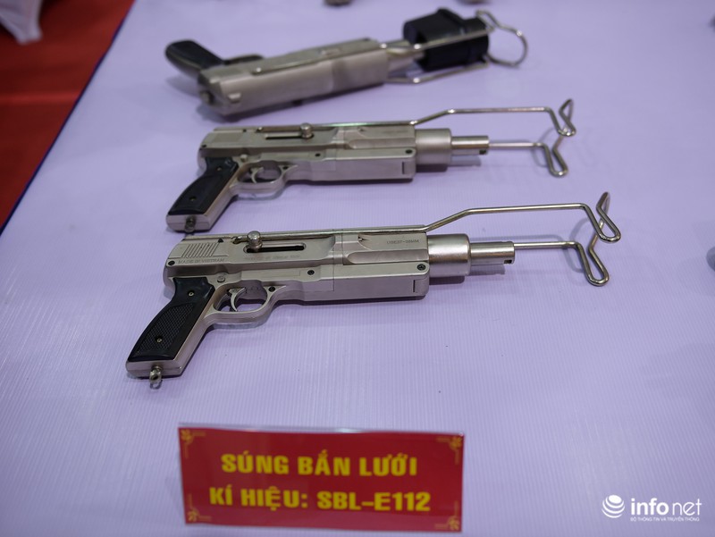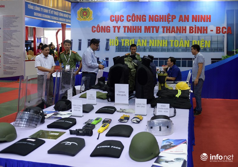 Một số trang thiết bị vũ khí của Bộ Công an và Bộ Quốc phòng được trưng bày tại triển lãm. |