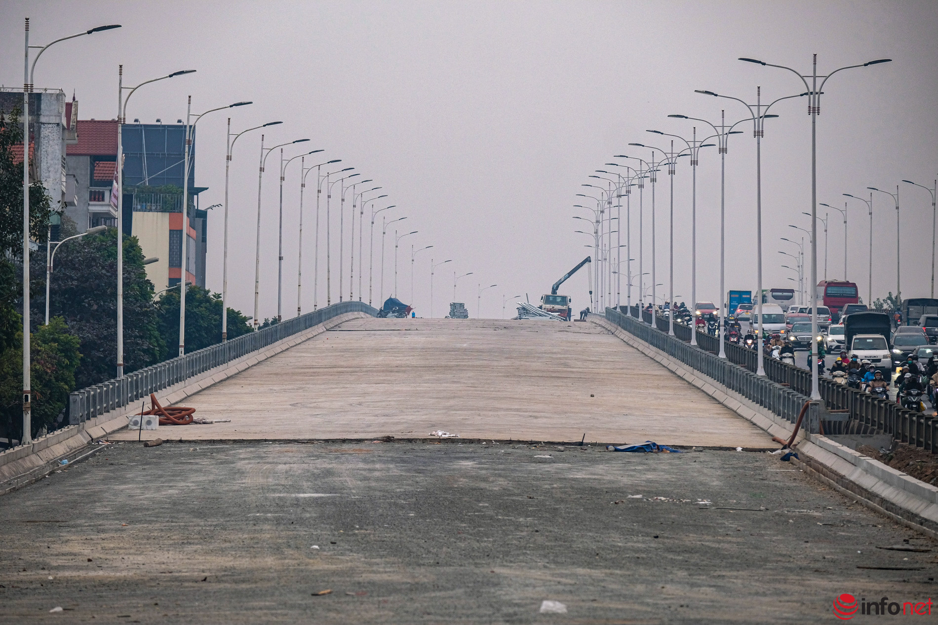 Trong khi đó, phía quận Long Biên, đoạn tiếp giáp với nút giao Cổ Linh đã hoàn thành thi công các kết cấu chính, mặt cầu, lan can và đèn chiếu sáng. Hiện tại, phần việc còn lại nhiều nhất là gói thi công cầu vượt sông (cầu chính). Theo đại diện nhà thầu, cầu chính vượt sông dài hơn 950 m gồm 8 nhịp, đây là hạng mục phức tạp nhất của toàn dự án.