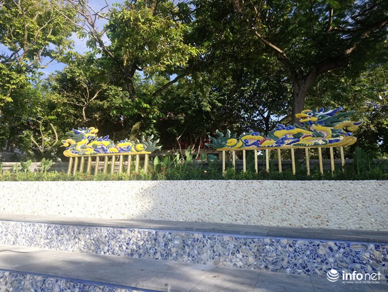 Hai con Rồng được trang trí sát phía đường đi bộ Nguyễn Đình Chiểu (TP Huế). |