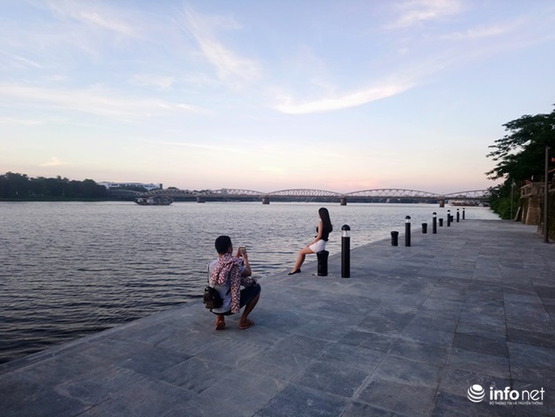 Ghi nhận của PV cho thấy, hiện một số công nhân đang khẩn trương thi công các hạng mục cuối cùng để dự kiến vào cuối tháng 10/2018 bàn giao đưa vào sử dụng nhưng đã có nhiều du khách, các bạn trẻ đến chụp ảnh, đứng trên cầu ngắm sông Hương.