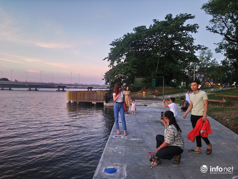 Khu vực nào không bị đơn vị thi công cấm đều có người ra chơi và chụp ảnh. |
