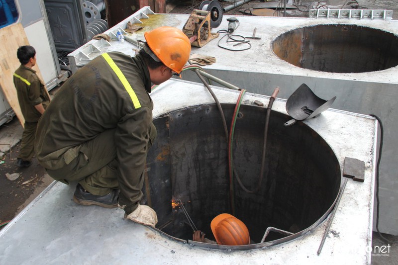 Hiện tại, hàng trăm công nhân của tập đoàn Công nghiệp Quang Trung ráo riết thi công, lắp đặt các thệ thống ống cống, máy bơm và điểm đặt máy bơm.